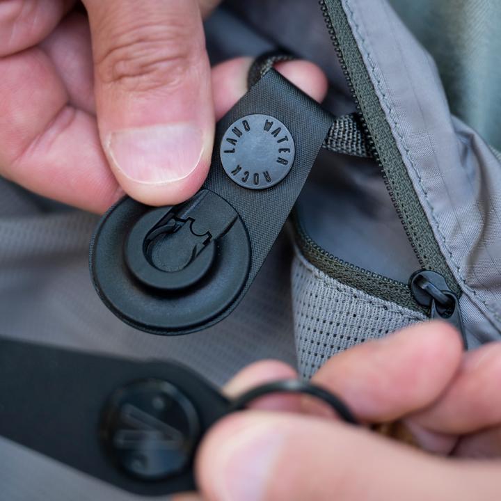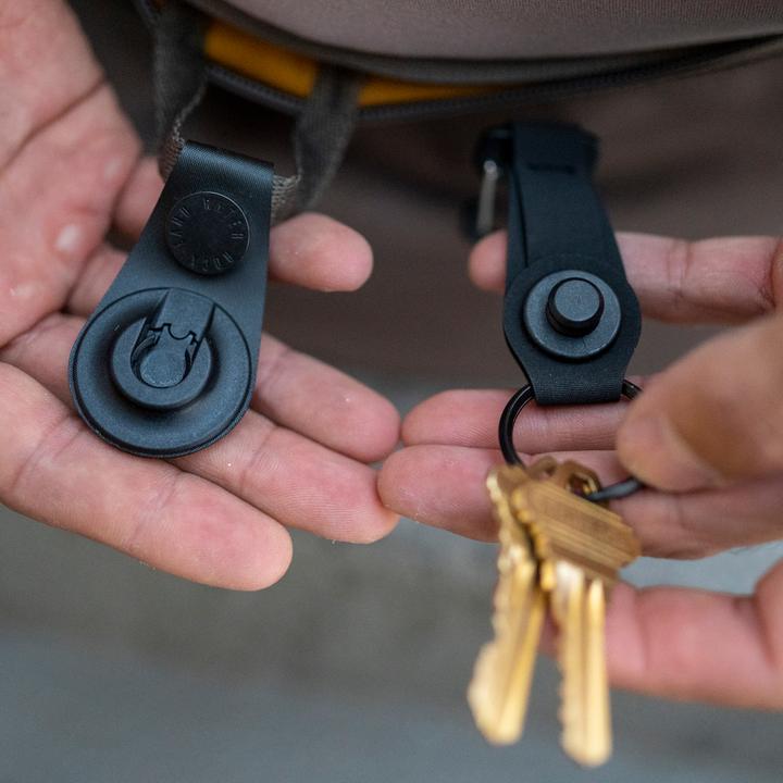 Enhance any Boundary pack, accessory, and more with our magnetic keychain dock. Made to complement the HT Key Clip, the HT Key Dock attaches to belt loops, backpacks, and other items to enhance the use of our Boundary keychain. Constructed from rugged laser-cut Hypalon, aluminum snap, and our signature magnetic dock, you can now store your keys anywhere and everywhere.