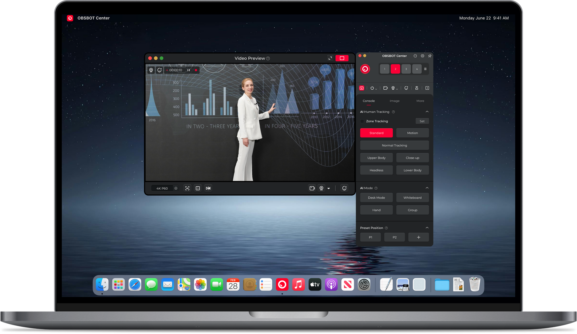 Start instant AI tracking for humans, animals, and objects with Double Click Tracking. Simply locate your desired target in the Obsbot Start preview interface and click twice. Our improved recognition engine and expanded database will recognize it immediately with minimal delay.