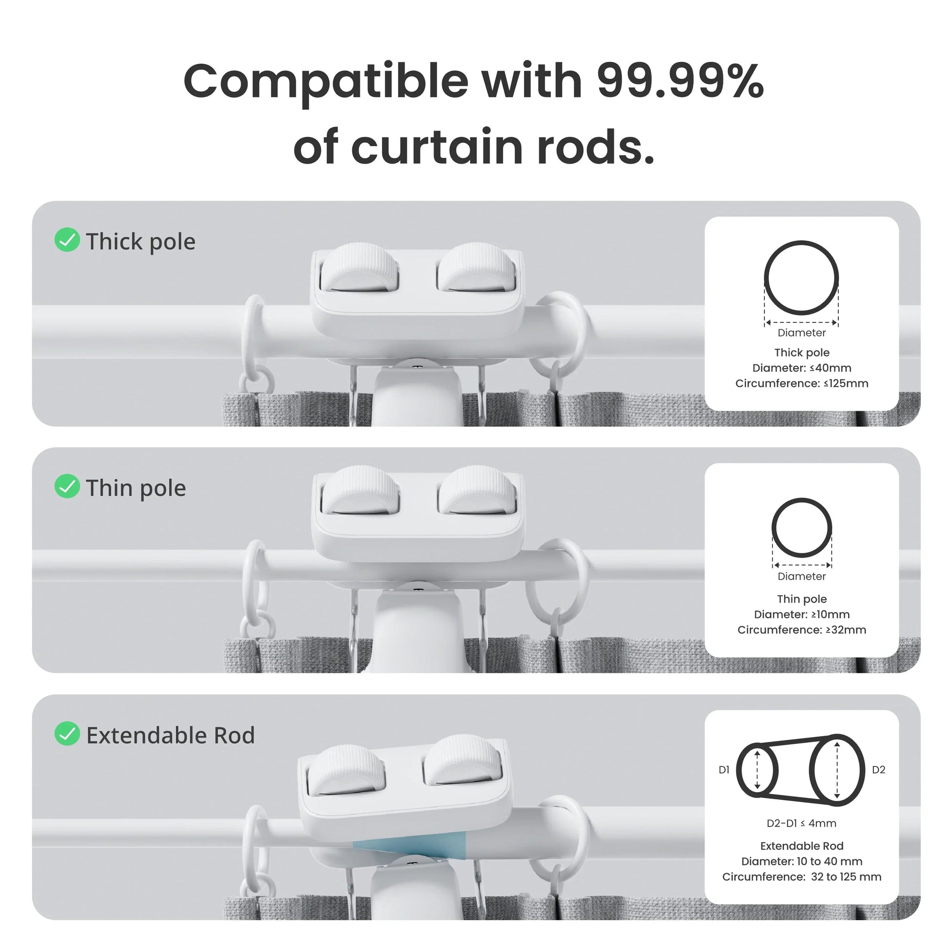 New RoverHook_ tech ensures 99.99% compatibility with 10_40mm curtain rods and up to 15kg heavy curtains, even blackout or layered ones.