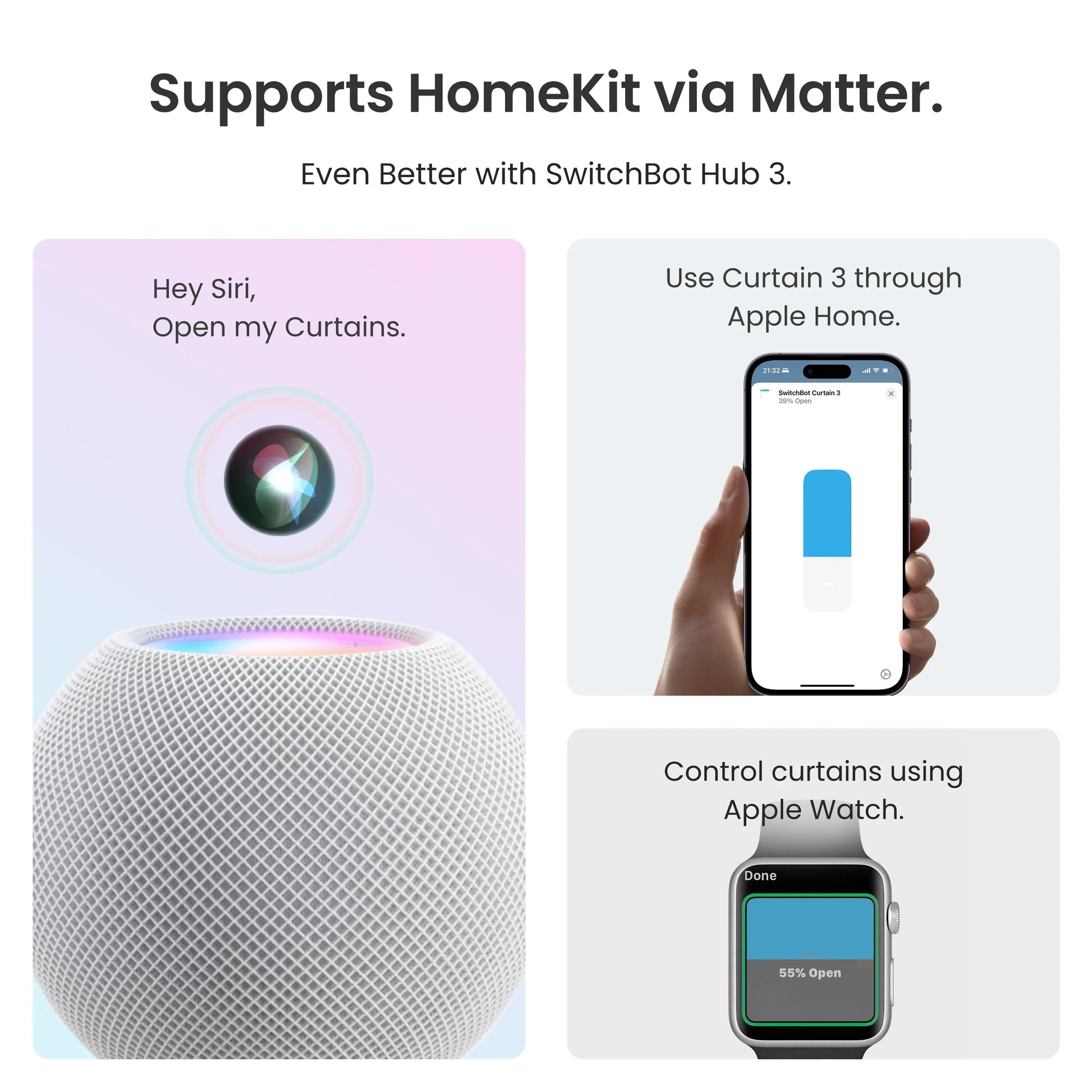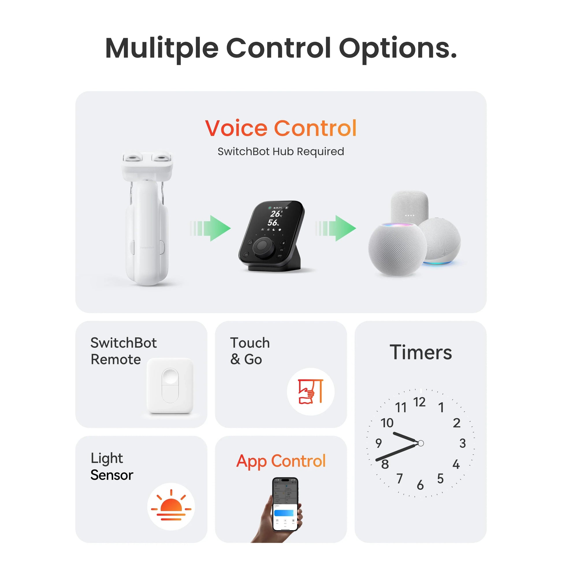 Control with app, voice, remote, or Touch & Go. Supports Alexa, Google Assistant, Siri, and Apple Home (SwitchBot Hub required).